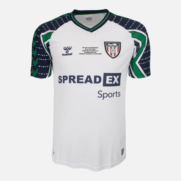 Shop the official 2025 Sunderland away football shirt by Hummel. Brand new with original tags, this piece is ideal for match days, football kit collectors and gifting to Sunderland supporters.