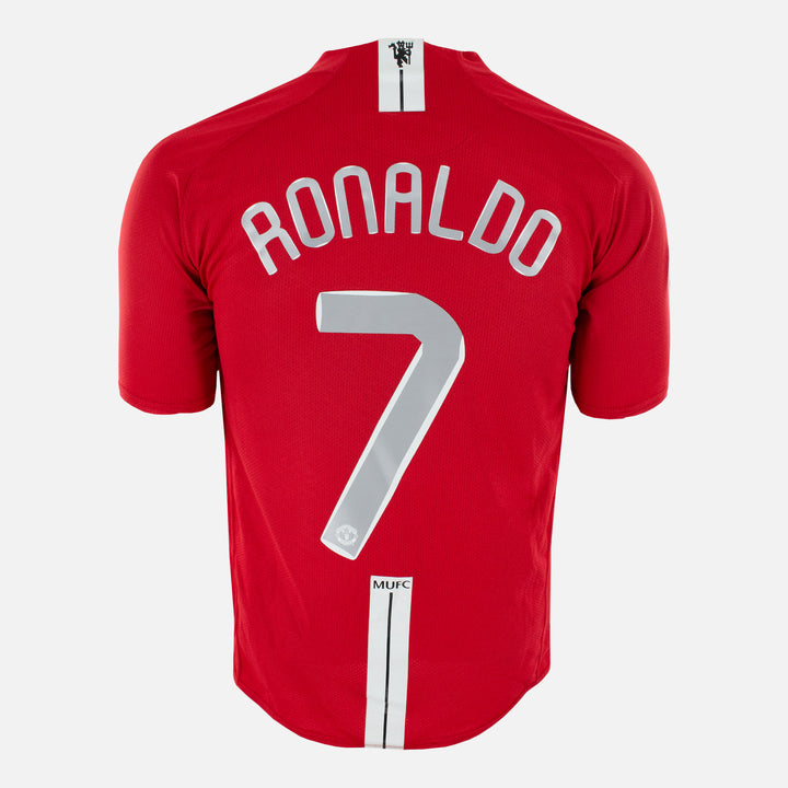 Own a classic retro 2007-09 Manchester United home football shirt with Cristiano Ronaldo name and number, made by Nike. This original shirt captures a moment in Manchester United history, making it a strong piece for collectors, display and everyday sportswear.