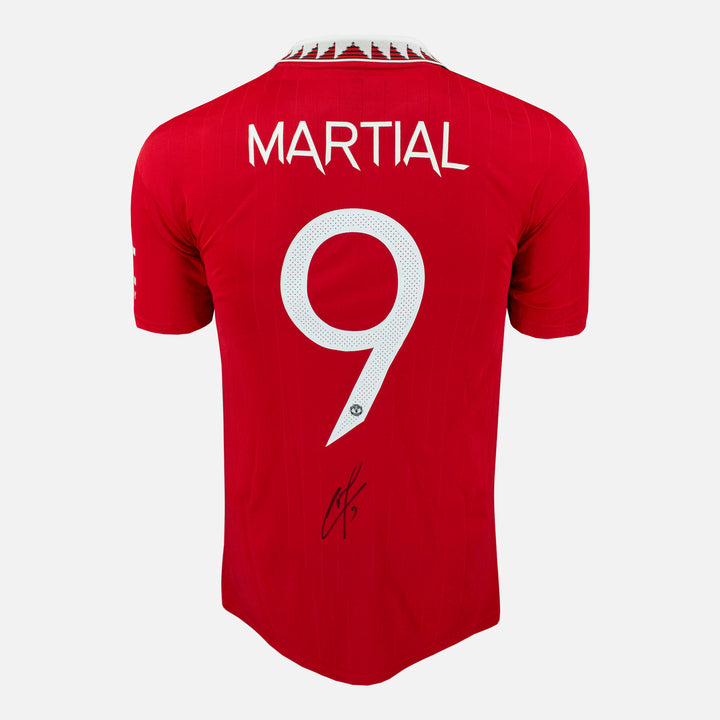 This Anthony Martial signed Manchester United shirt is authenticated with Vault Verify™. Secured with an NFC authenticity tag, allowing you to tap and instantly verify your item using your smartphone. Protected and tamper-resistant, it provides long-term assurance, backed by our iconic Certificate of Authenticity.